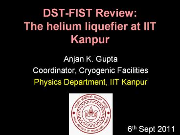 <Notice: Removed> DST-FIST Review: The helium liquefier at IIT Kanpur PowerPoint PPT Presentation