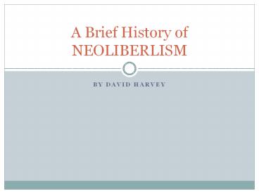 1A Brief History of NEOLIBERLISM