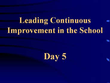 Title: Leading Continuous Improvement in the School