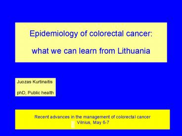 Title: Recent advances in the management of colorectal cancer Vilnius, May 6-7