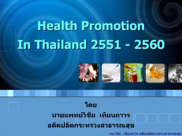 ? ?.?.2005 2011 ? MMR lt 18 100,000 ???????????? (?? 2548 17.4) ? IMR (0-1 ??) lt 151,000???????????? (?? 2549 16.7) ? Bonding ? Healthy ? ????????????????????? ???. / ???. ?.??? ????? ? Happiness ? Good Health ? GNP / GDP ? Happiness ? Good Health ? ????????????? ???????? 10 ?? ? 80 ?? (?? 2560) - ?76.3 ?? (?? 2551) - ?69.5 ?? (?? 2551) ? Happiness