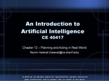 <Notice: Removed> An Introduction to Artificial Intelligence CE 40417 PowerPoint PPT Presentation