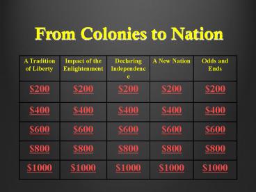 A Tradition of Liberty Impact of the Enlightenment Declaring Independence A New Nation Odds and Ends