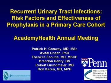 <Notice: Removed> Recurrent Urinary Tract Infections: Risk Factors and Effectiveness of Prophylaxis in a Primary Care Cohort AcademyHealth Annual Meeting PowerPoint PPT Presentation
