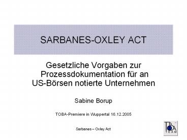 <Notice: Removed> SARBANES-OXLEY ACT PowerPoint PPT Presentation