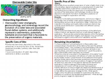• Eberswalde Crater stratigraphy, geomorphology,