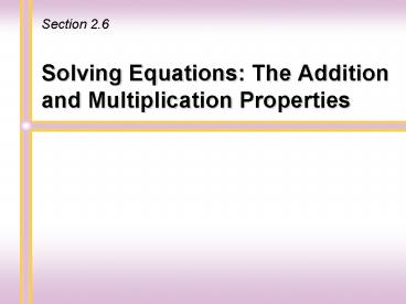 Title: Solving Equations: The Addition and Multiplication Properties