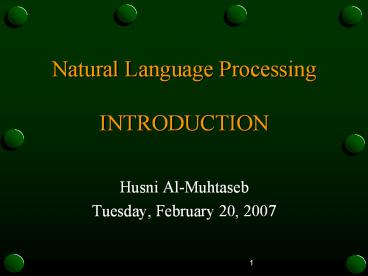 <Notice: Removed> Natural Language Processing INTRODUCTION PowerPoint PPT Presentation