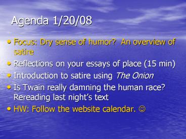 Agenda 1/20/08 PowerPoint PPT Presentation