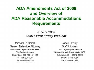 <Notice: Removed> ADA Amendments Act of 2008 and Overview of ADA Reasonable Accommodations Requirements June 5, 2009 CORT First Friday Webinar PowerPoint PPT Presentation