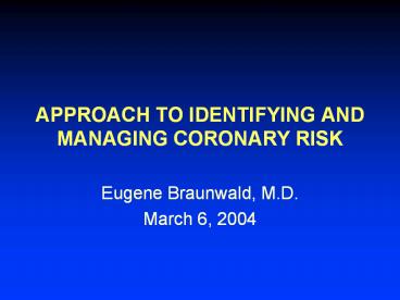 APPROACH TO IDENTIFYING AND MANAGING CORONARY RISK PowerPoint PPT Presentation