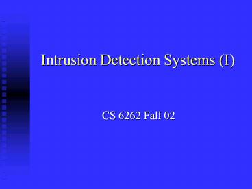 <Notice: Removed> Intrusion Detection Systems (I) PowerPoint PPT Presentation