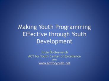 <Notice: Removed> Making Youth Programming Effective through Youth Development PowerPoint PPT Presentation