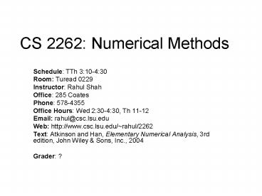 CS 2262: Numerical Methods PowerPoint PPT Presentation