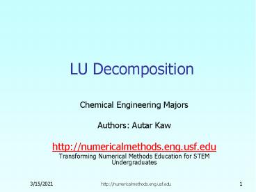 - http//numericalmethods.eng.usf.edu/topics/lu_deco