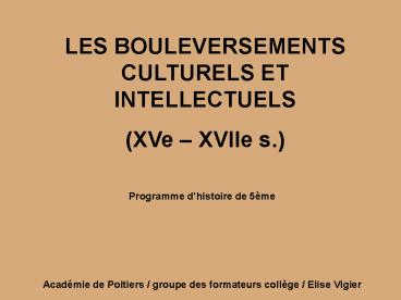 CULTURELS ET INTELLECTUELS (XVe XVIIe