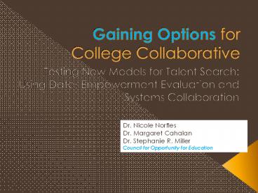 Dr. Nicole Norfles Dr. Margaret Cahalan Dr.