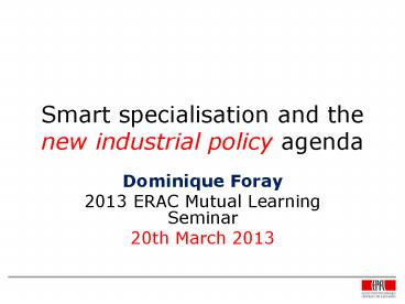 <Notice: Removed> Smart specialisation and the new industrial policy agenda PowerPoint PPT Presentation