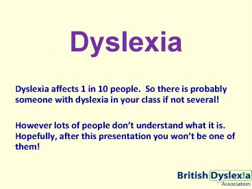 Dyslexia PowerPoint PPT Presentation