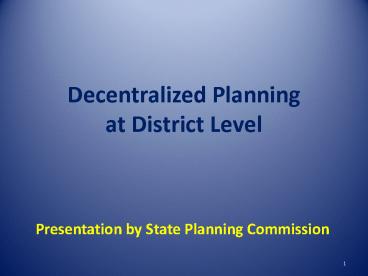 Decentralized Planning at District Level PowerPoint PPT Presentation