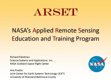 NASA ARSET Training for EPA Region 4 Appalachian State University North Carolina June 2011