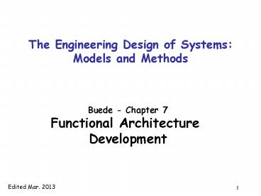 <Notice: Removed> The Engineering Design of Systems: Models and Methods PowerPoint PPT Presentation