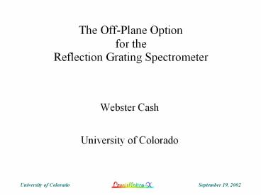 Title: The Off-Plane Option for the Reflection Grating Spectrometer
