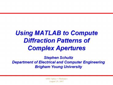 Title: Using MATLAB to Compute Diffraction Patterns of Complex Apertures