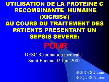 UTILISATION DE LA PROTEINE C RECOMBINANTE