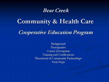 <Notice: Removed> Bear Creek Community PowerPoint PPT Presentation