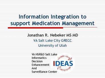 <Notice: Removed> Information Integration to support Medication Management PowerPoint PPT Presentation