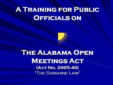Title: A Training for Public Officials on The Alabama Open Meetings Act (Act No. 2005-40)