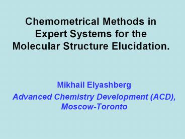 <Notice: Removed> Chemometrical Methods in Expert Systems for the Molecular Structure Elucidation. PowerPoint PPT Presentation
