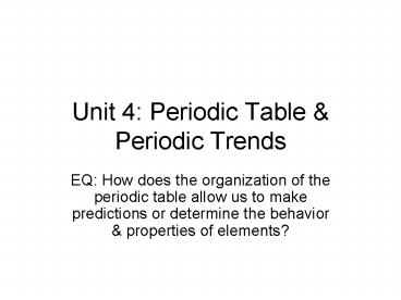 Unit 4: Periodic Table PowerPoint PPT Presentation