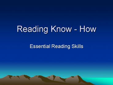 Reading Know - How Essential Reading Skills Making Inferences This means you make a REASONABLE GUESS about meaning Reading between the lines to discover the ... – PowerPoint PPT presentation