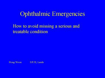 <Notice: Removed> Ophthalmic Emergencies PowerPoint PPT Presentation