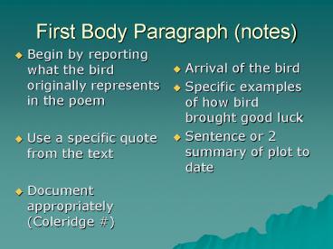 First Body Paragraph (notes) PowerPoint PPT Presentation