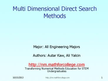 physical problems, please visit - http//nm.mathforcollege.com/topics/opt_multidime