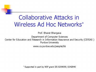 <Notice: Removed> Collaborative Attacks in Wireless Ad Hoc Networks* PowerPoint PPT Presentation