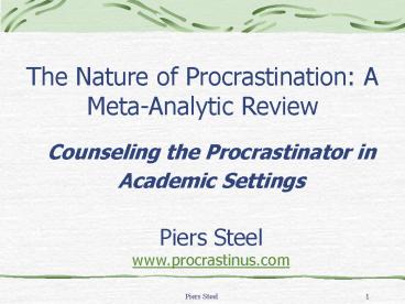 The Nature of Procrastination: A Meta-Analytic Review PowerPoint PPT Presentation