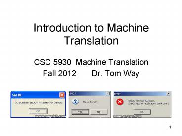 <Notice: Removed> Introduction to Machine Translation PowerPoint PPT Presentation