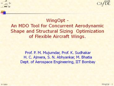 <Notice: Removed> WingOpt - 1 PowerPoint PPT Presentation