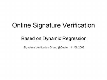 1Online Signature Verification