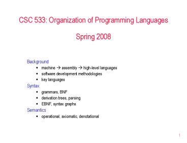<Notice: Removed> CSC 533: Organization of Programming Languages Spring 2008 PowerPoint PPT Presentation