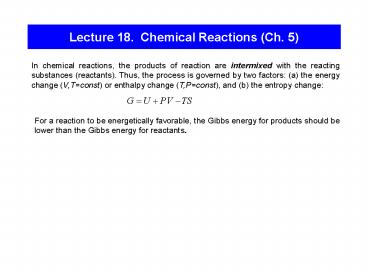 <Notice: Removed> Lecture 18. Chemical Reactions (Ch. 5) PowerPoint PPT Presentation