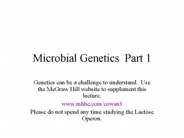 Microbial Genetics Part 1 PowerPoint PPT Presentation