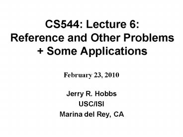 <Notice: Removed> CS544: Lecture 6: Reference and Other Problems Some Applications PowerPoint PPT Presentation
