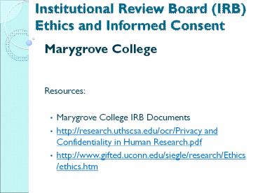Title: Institutional Review Board (IRB) Ethics and Informed Consent