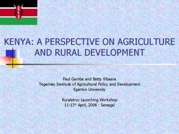 Title: KENYA: A PERSPECTIVE ON AGRICULTURE AND RURAL DEVELOPMENT