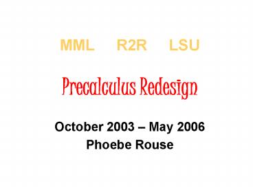 <Notice: Removed> MML R2R LSU Precalculus Redesign October 2003 PowerPoint PPT Presentation
